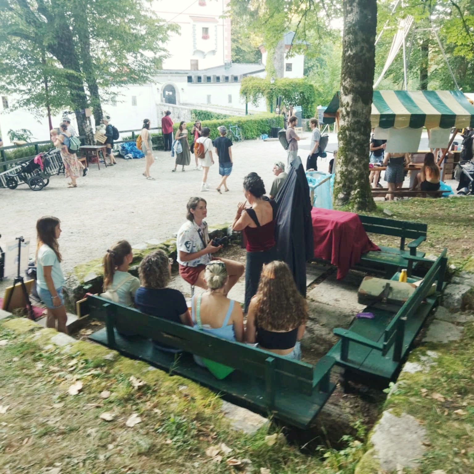 “You are a true Guerilla Performer!” Gal (one of the super professional coordinators of the Floating Castle Festival) defines me like that, after going through somersaults to find the right spot (chasing friendly guests off the benches), defending it with posters and handwritten signs (the festival’s blackboards were out), and successfully performing anytime was possible. With a bonus for the botched but unmistakable sign placed on the suitcase.